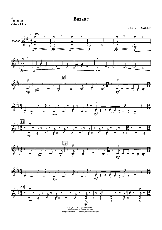 "Bazaar - Violin 3 (Viola T.C.)" Sheet Music by George Sweet
