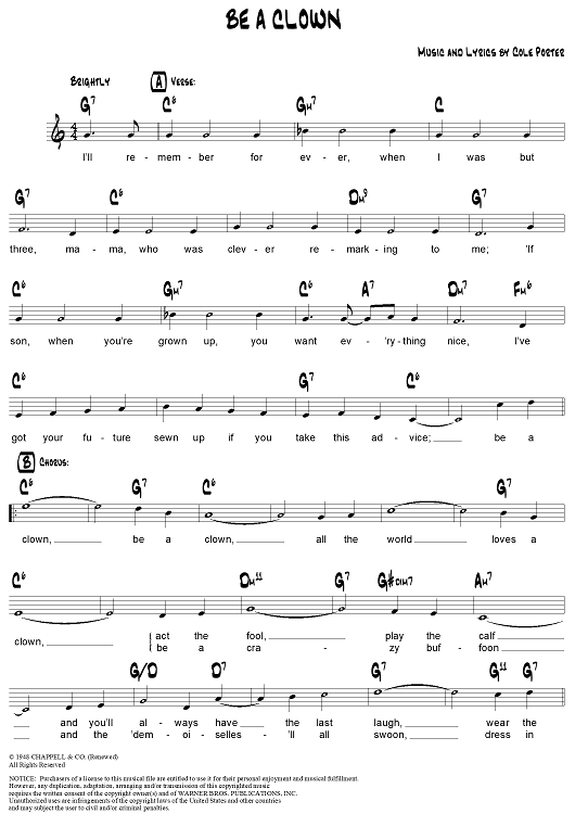 Digital Sheet Music for Be A Clown by Cole Porter scored for Lead Sheet; id:315442