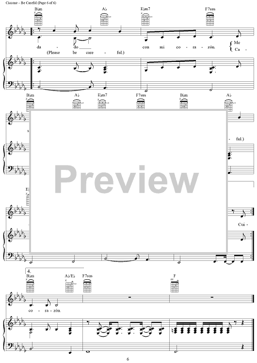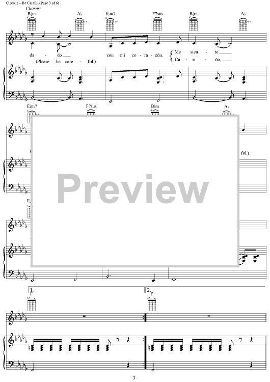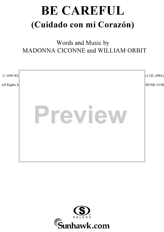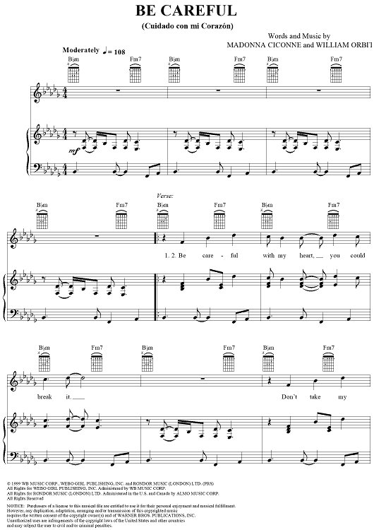 Digital Sheet Music for Be Careful (Cuidado con mi Corazón) by William Orbit, Ricky Martin, Madonna scored for Piano/Vocal/Chords; id:272759