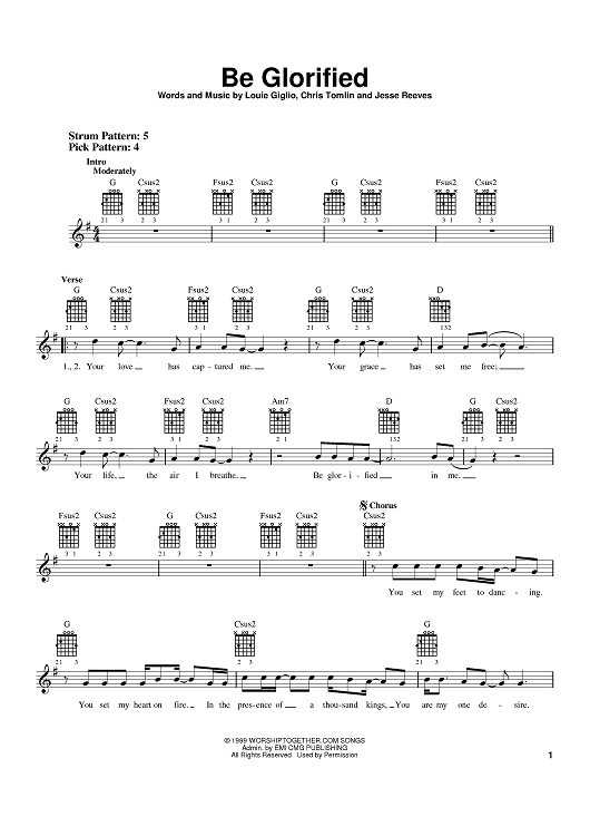 Digital Sheet Music for Be Glorified by Chris Tomlin, Louie Giglio, Tim Hughes, Jesse Reeves, Passion Band scored for Easy Guitar; id:383341