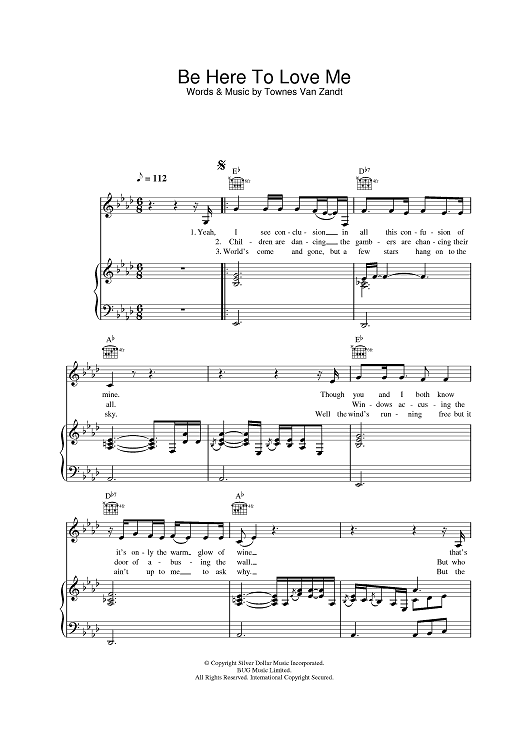Digital Sheet Music for Be Here To Love Me by Norah Jones scored for Piano/Vocal/Chords; id:378406