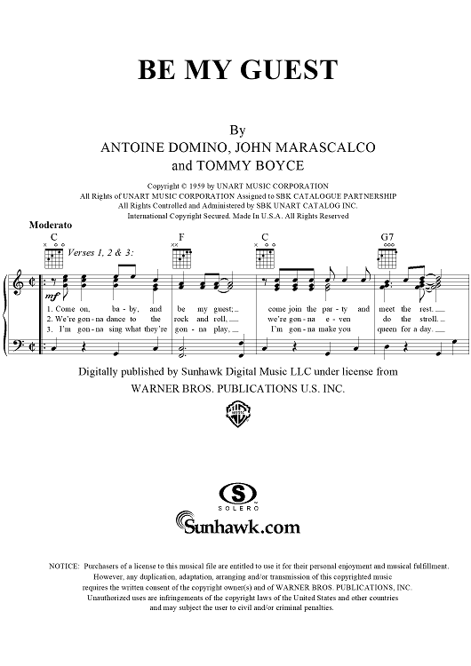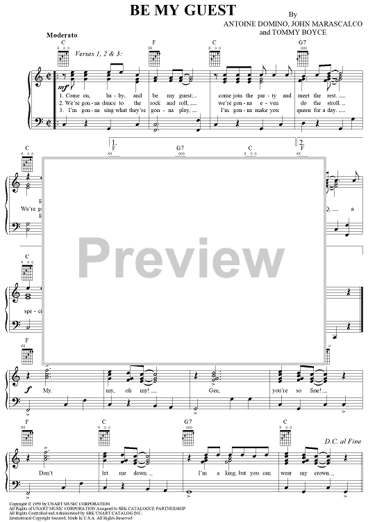 Digital Sheet Music for Be My Guest by John Marascalco, Tommy Boyce, Fats Domino scored for Piano/Vocal/Chords; id:271241