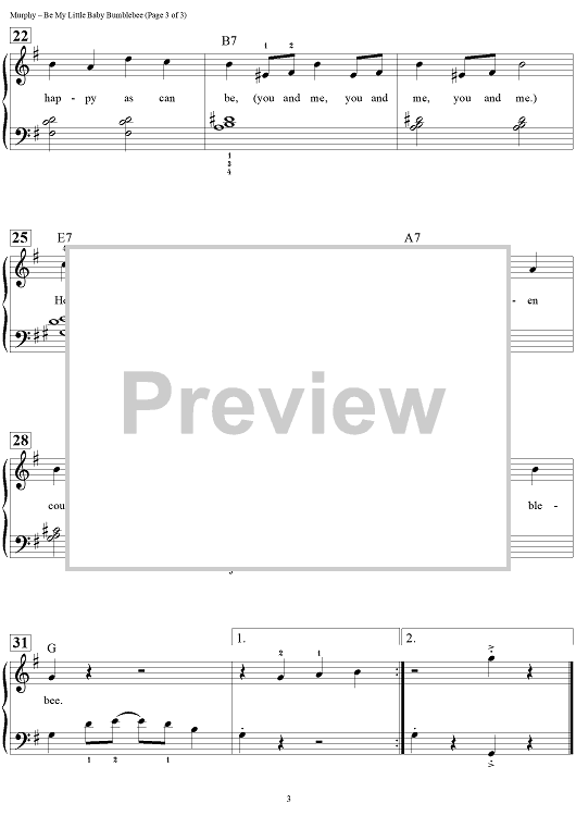 Digital Sheet Music for Be My Little Baby Bumblebee by Dan Coates, Stanley Murphy, Henry I. Marshall scored for Easy Piano/Vocal/Chords; id:456402
