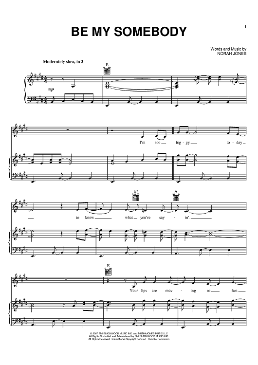 Digital Sheet Music for Be My Somebody by Norah Jones scored for Piano/Vocal/Chords; id:397569