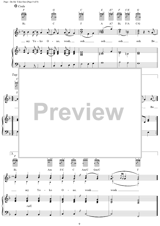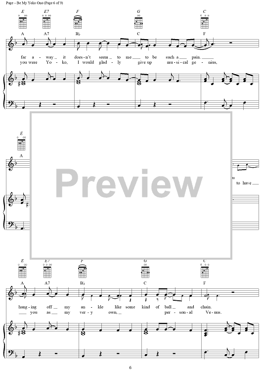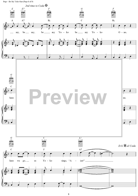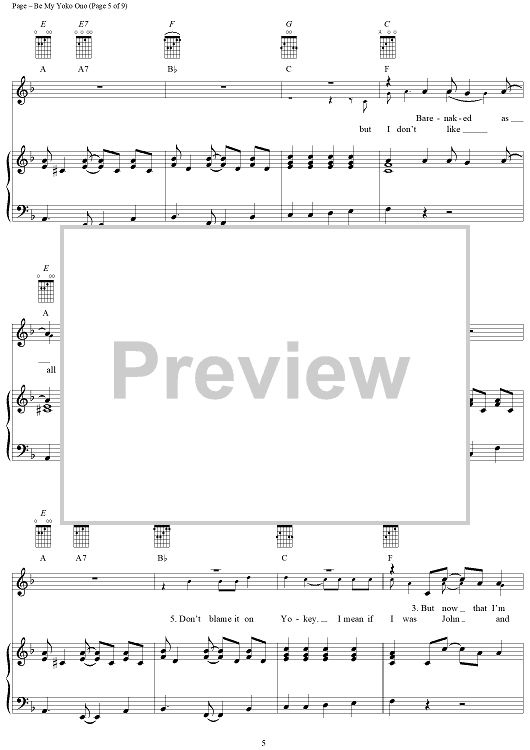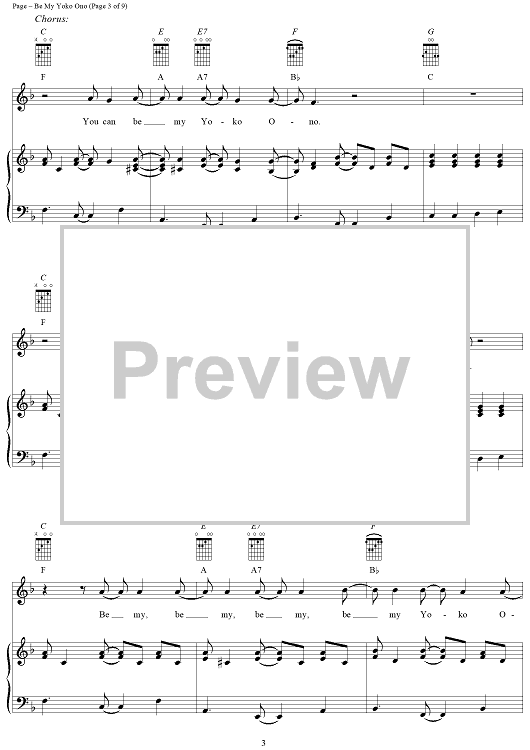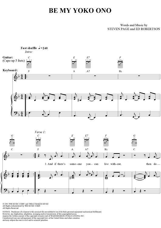 Digital Sheet Music for Be My Yoko Ono by Steven Page, Ed Robertson, Barenaked Ladies scored for Piano/Vocal/Chords; id:288890