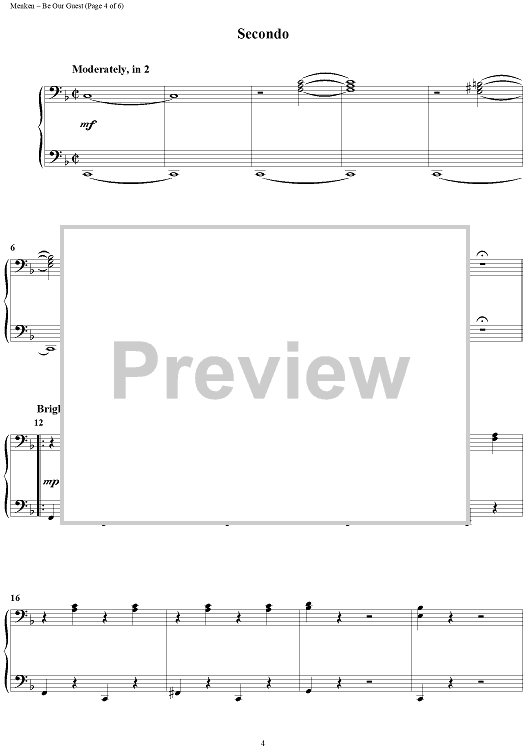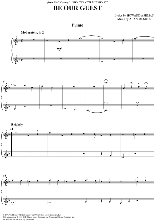 Digital Sheet Music for Be Our Guest by Alan Menken, Howard Ashman scored for 1 Piano, 4 Hands; id:402723