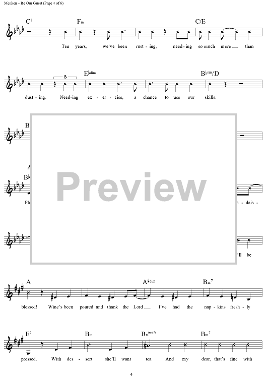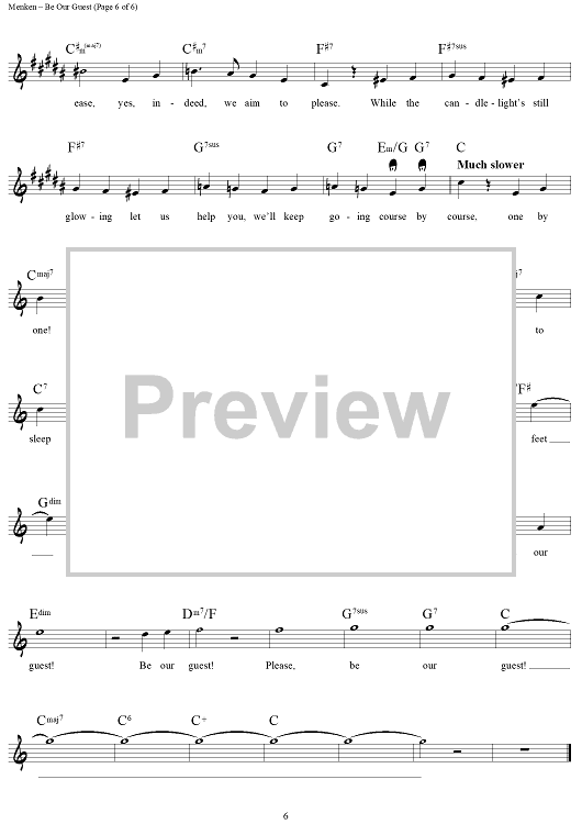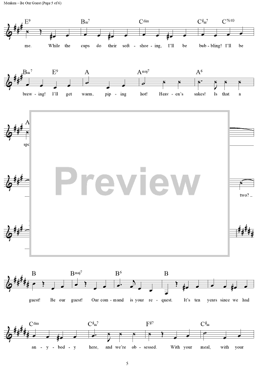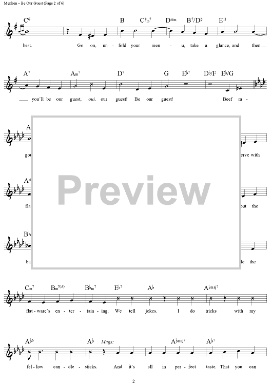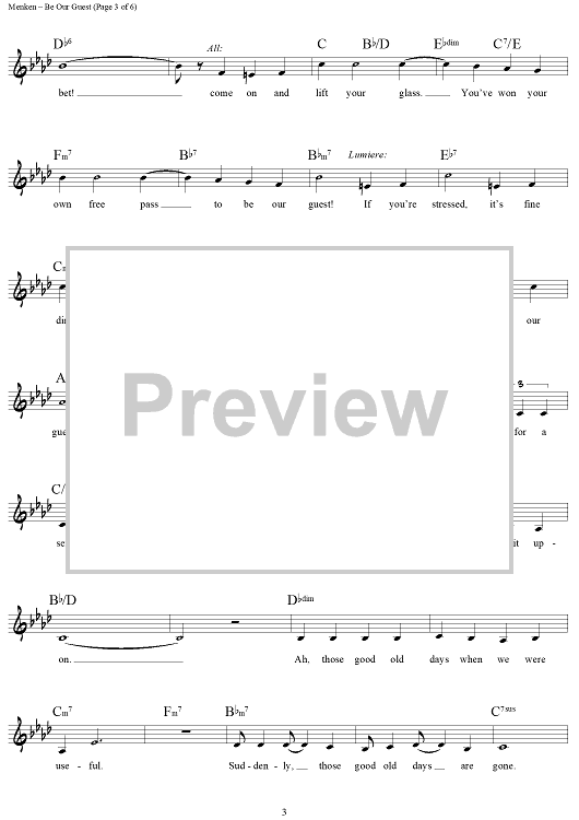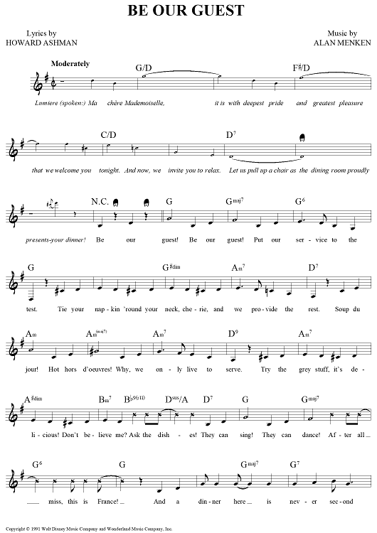 Digital Sheet Music for Be Our Guest by Alan Menken, Howard Ashman scored for Lead Sheet; id:442034