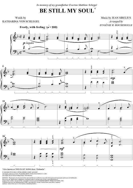 Digital Sheet Music for Be Still My Soul by Katharina von Schlegel, Eugénie R. Rocherolle, Jean Sibelius scored for Easy Piano; id:293512