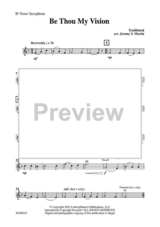 Digital Sheet Music for Be Thou My Vision - Bb Tenor Sax by Traditional, Jeremy S. Martin scored for Concert Band; id:504523
