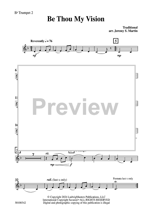 Digital Sheet Music for Be Thou My Vision - Bb Trumpet 2 by Traditional, Jeremy S. Martin scored for Concert Band; id:504526