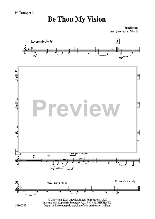 Digital Sheet Music for Be Thou My Vision - Bb Trumpet 3 by Traditional, Jeremy S. Martin scored for Concert Band; id:504527