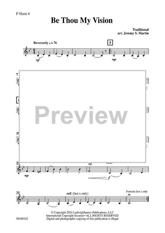 Digital Sheet Music for Be Thou My Vision - F Horn 4 by Traditional, Jeremy S. Martin scored for Concert Band; id:504531