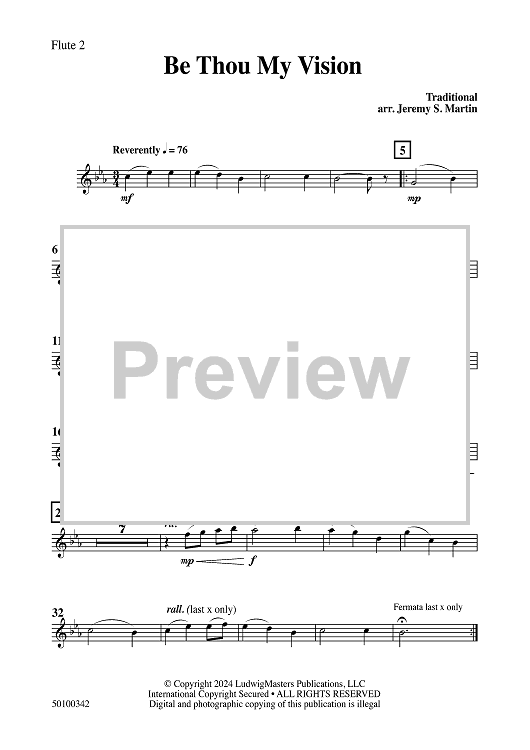 Digital Sheet Music for Be Thou My Vision - Flute 2 by Traditional, Jeremy S. Martin scored for Concert Band; id:504512