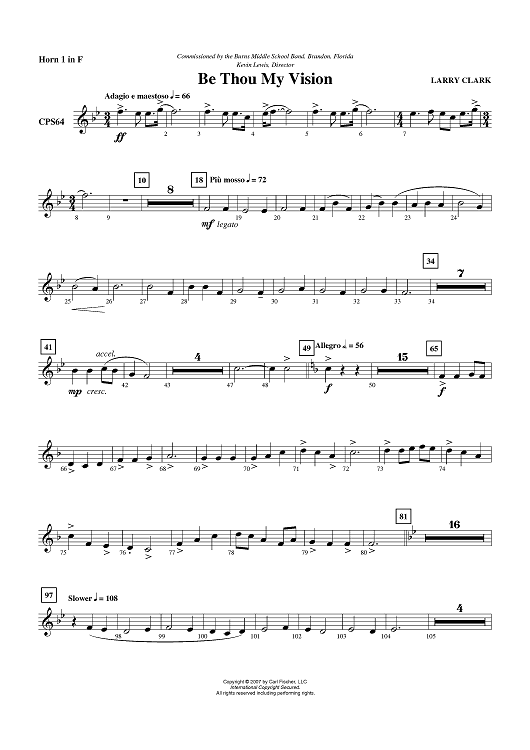 Digital Sheet Music for Be Thou My Vision - Horn in F 1 by Larry Clark scored for Concert Band; id:407194