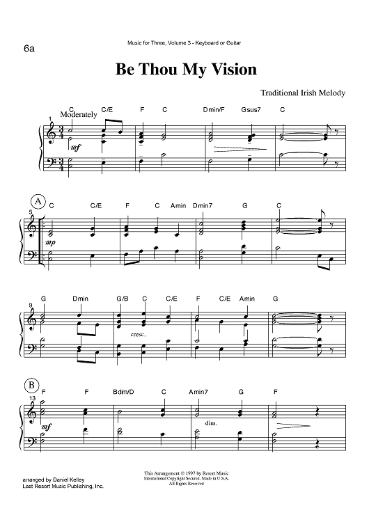 Digital Sheet Music for Be Thou My Vision - Keyboard or Guitar by , Traditional Irish Melody, Daniel Kelley scored for Instrumental Trio; id:423930