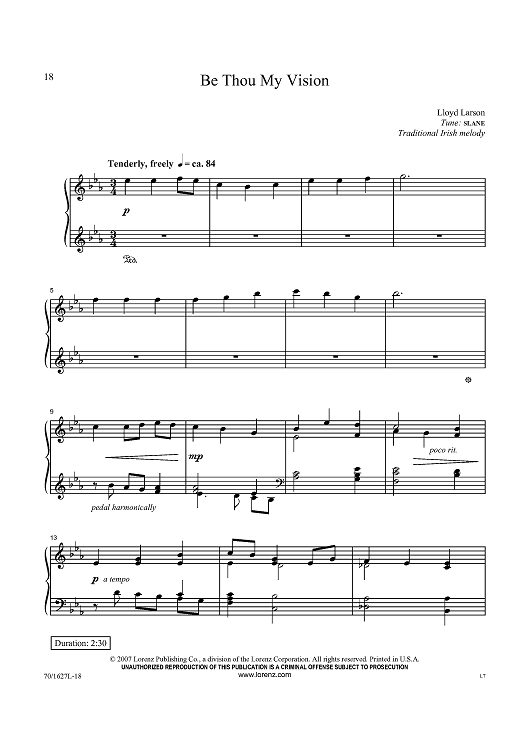 Digital Sheet Music for Be Thou My Vision by Traditional Irish Melody, Lloyd Larson scored for Piano Solo; id:433916
