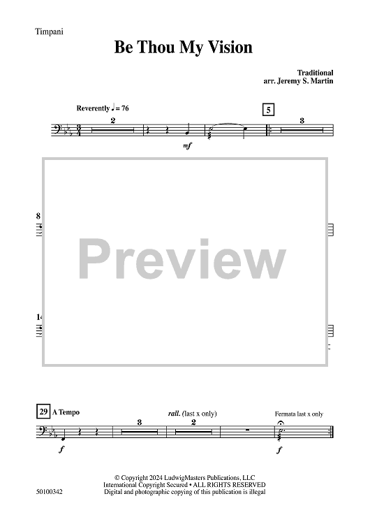 Digital Sheet Music for Be Thou My Vision - Timpani by Traditional, Jeremy S. Martin scored for Concert Band; id:504538