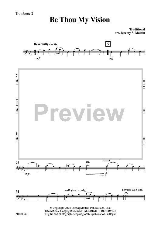 Digital Sheet Music for Be Thou My Vision - Trombone 2 by Traditional, Jeremy S. Martin scored for Concert Band; id:504533