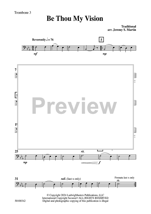 Digital Sheet Music for Be Thou My Vision - Trombone 3 by Traditional, Jeremy S. Martin scored for Concert Band; id:504534