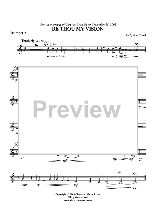 Digital Sheet Music for Be Thou My Vision - Trumpet 2 by , Tony Zilincik scored for Brass Quintet; id:357489