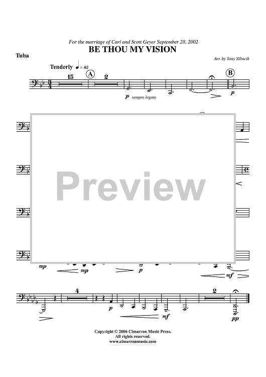 Digital Sheet Music for Be Thou My Vision - Tuba by , Tony Zilincik scored for Brass Quintet; id:357493