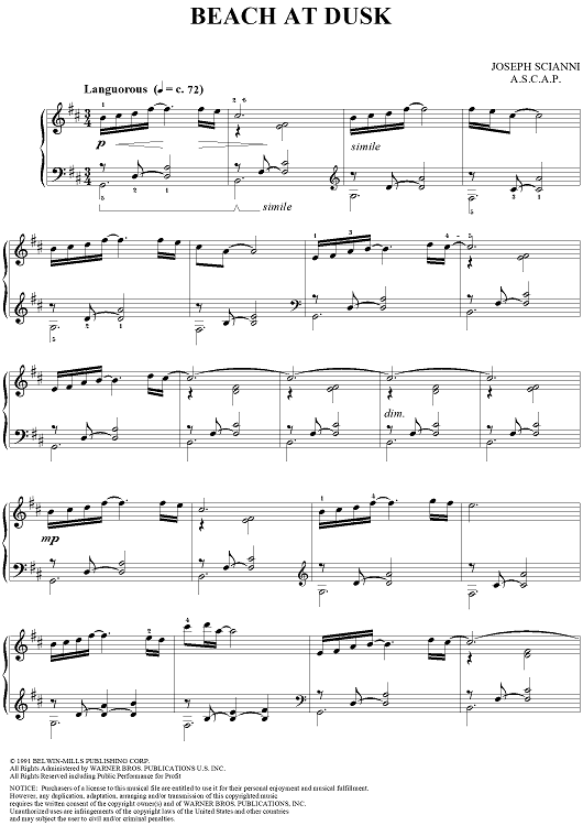 "Beach at Dusk" Sheet Music by Joseph Scianni
