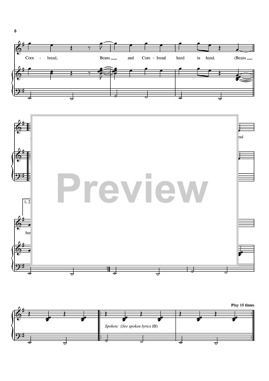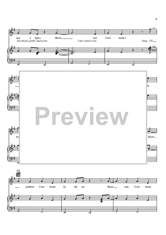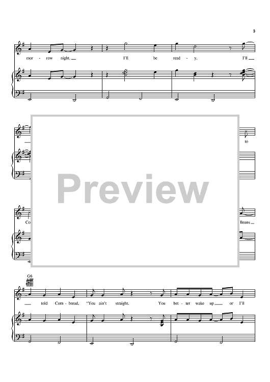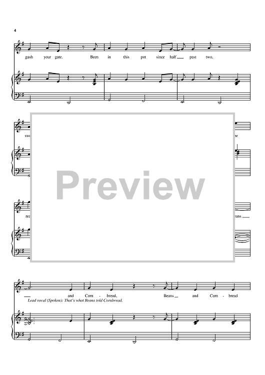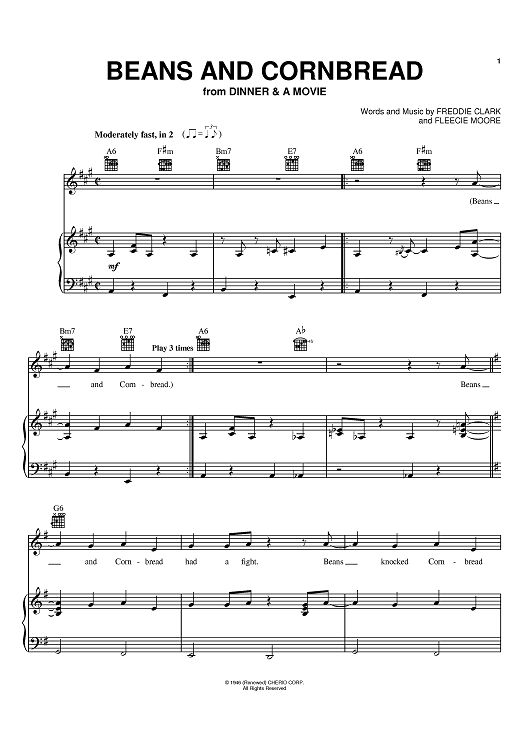 Digital Sheet Music for Beans And Cornbread by Louis Jordan, Freddie Clark, Fleecie Moore scored for Piano/Vocal/Chords; id:373974