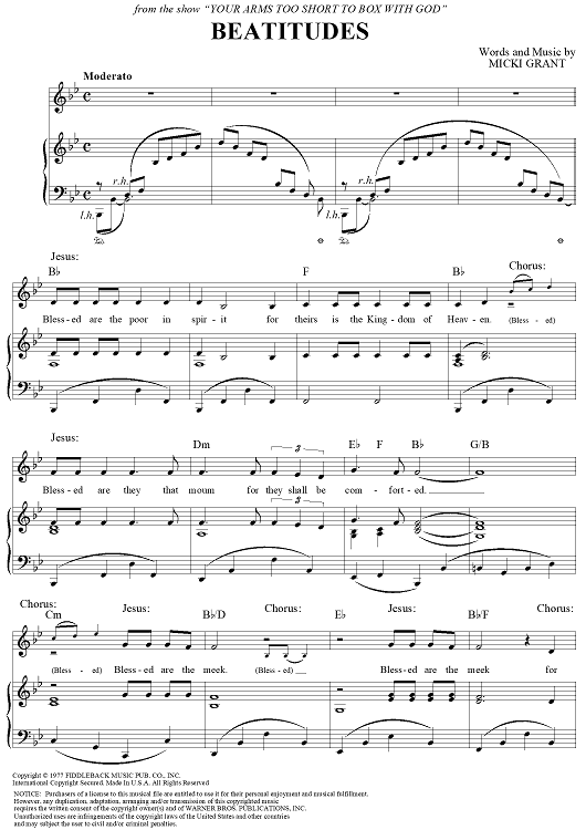 Digital Sheet Music for Beatitudes by Micki Grant scored for Piano/Vocal/Chords; id:267855