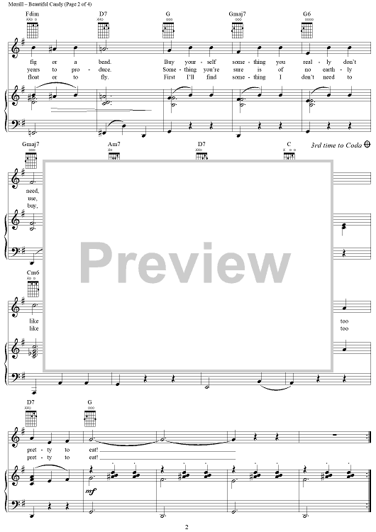 Digital Sheet Music for Beautiful Candy by Bob Merrill scored for Piano/Vocal/Chords; id:251891