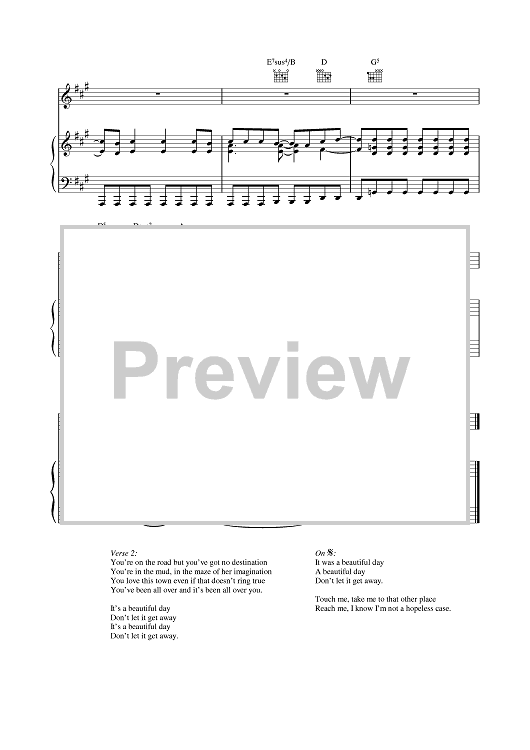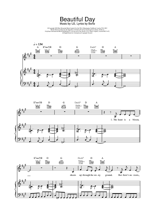 Digital Sheet Music for Beautiful Day by U2 scored for Piano/Vocal/Chords; id:377141