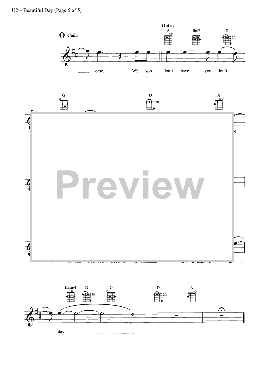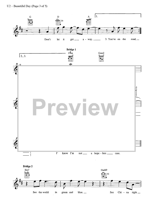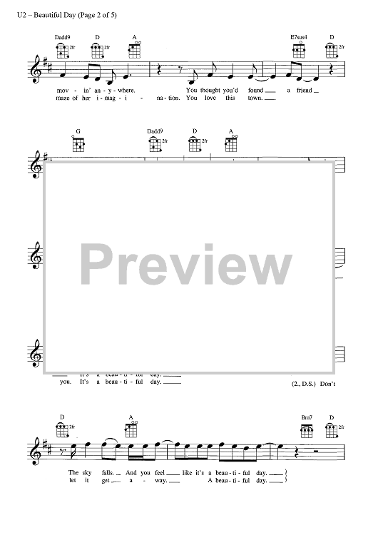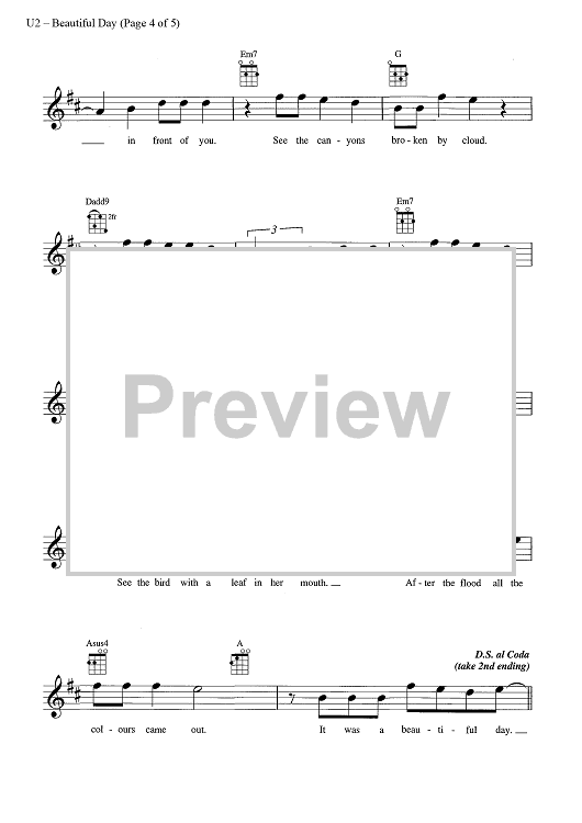 Digital Sheet Music for Beautiful Day by U2, Bono scored for Ukulele/Vocal; id:444759