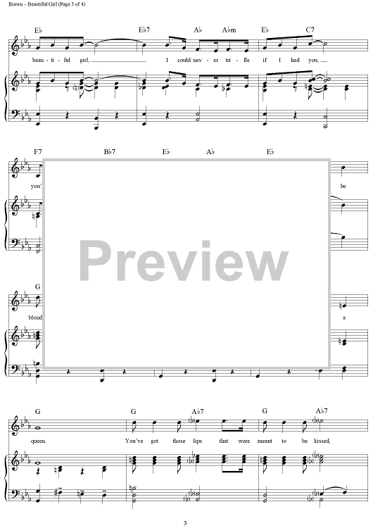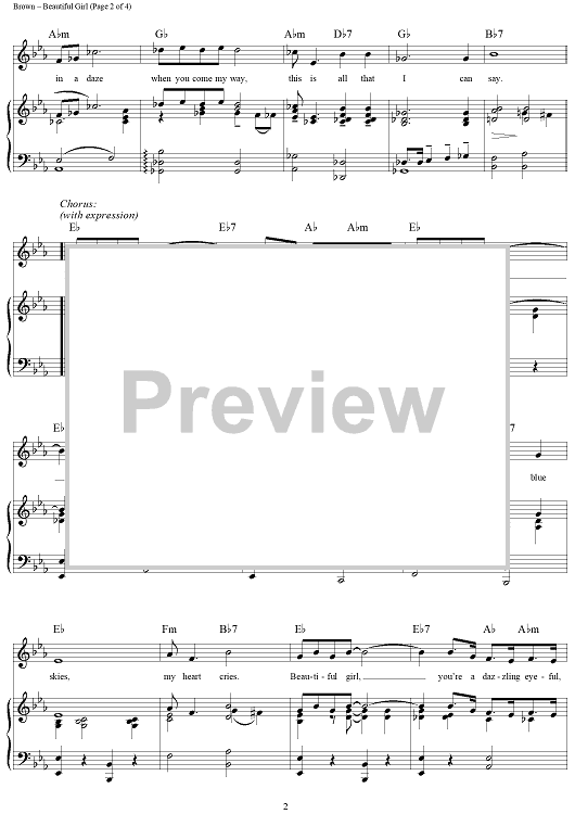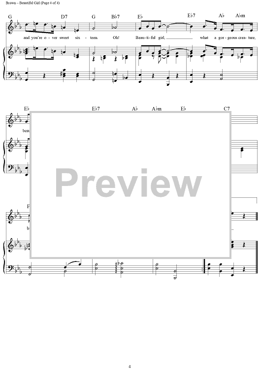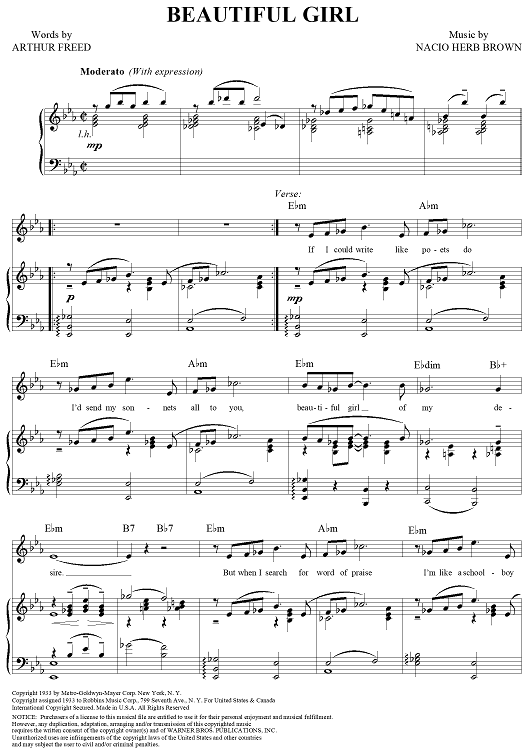 Digital Sheet Music for Beautiful Girl by Nacio Herb Brown, Arthur Freed scored for Piano/Vocal/Chords; id:354997