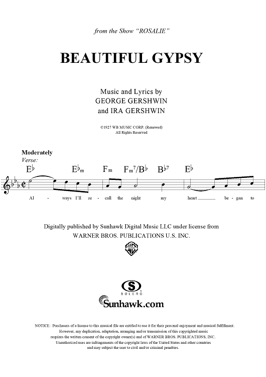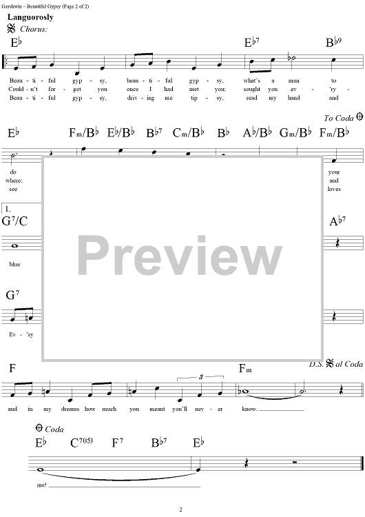 Digital Sheet Music for Beautiful Gypsy by , George Gershwin, Ira Gershwin scored for Lead Sheet; id:283395