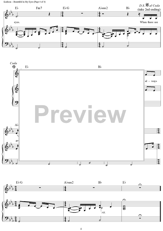Digital Sheet Music for Beautiful In My Eyes by Joshua Kadison scored for Piano/Vocal/Chords; id:368628