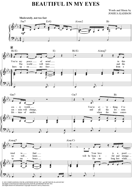 "Beautiful In My Eyes" Sheet Music by Joshua Kadison
