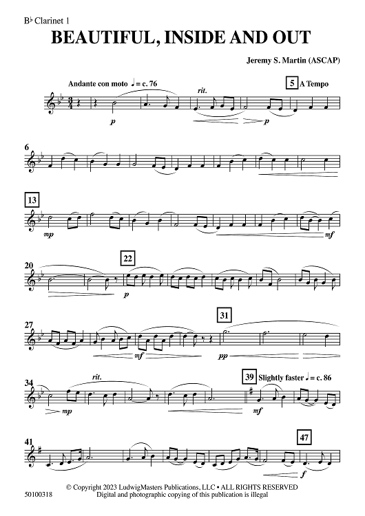 "Beautiful Inside and Out - Bb Clarinet 1" Sheet Music by Jeremy S. Martin