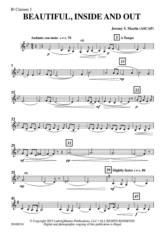 "Beautiful Inside and Out - Bb Clarinet 3" Sheet Music by Jeremy S. Martin