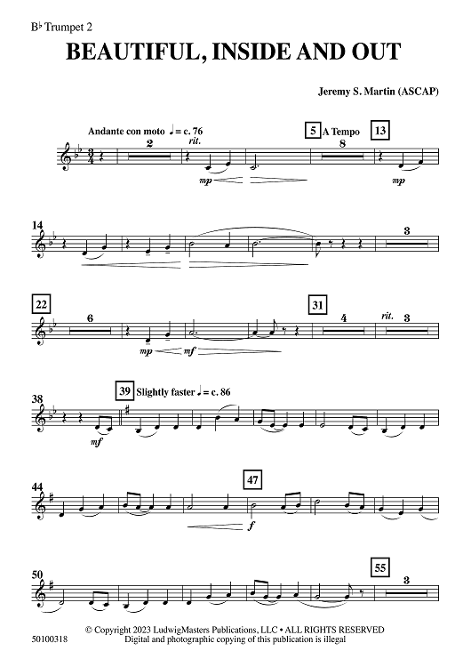"Beautiful Inside and Out - Bb Trumpet 2" Sheet Music by Jeremy S. Martin