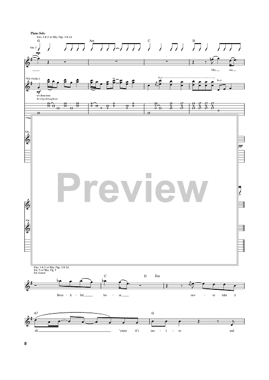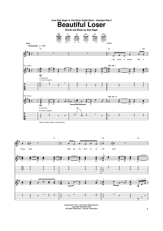 Digital Sheet Music for Beautiful Loser by Bob Seger scored for Guitar Tab; id:374457