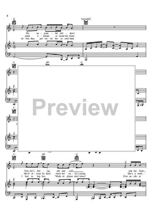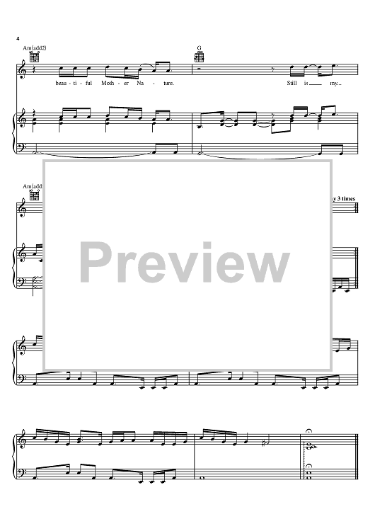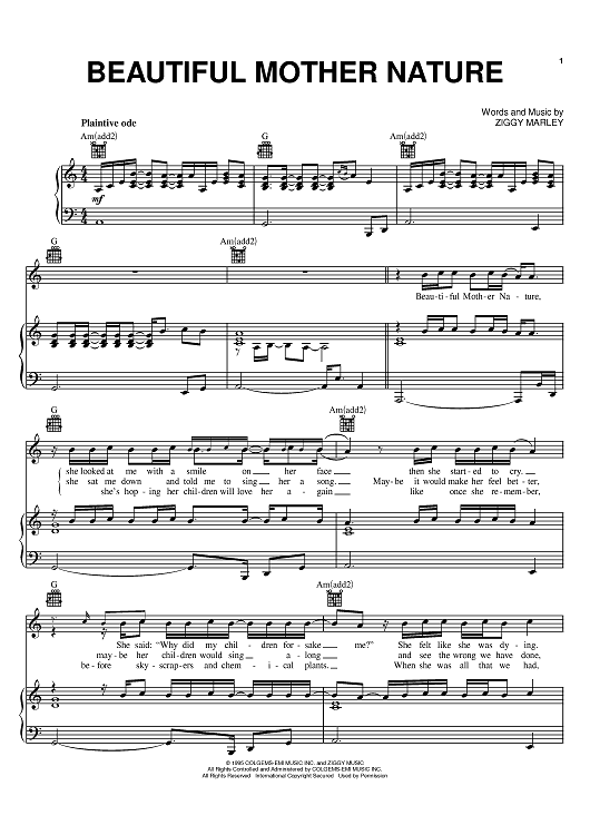Digital Sheet Music for Beautiful Mother Nature by Ziggy Marley scored for Piano/Vocal/Chords; id:383576