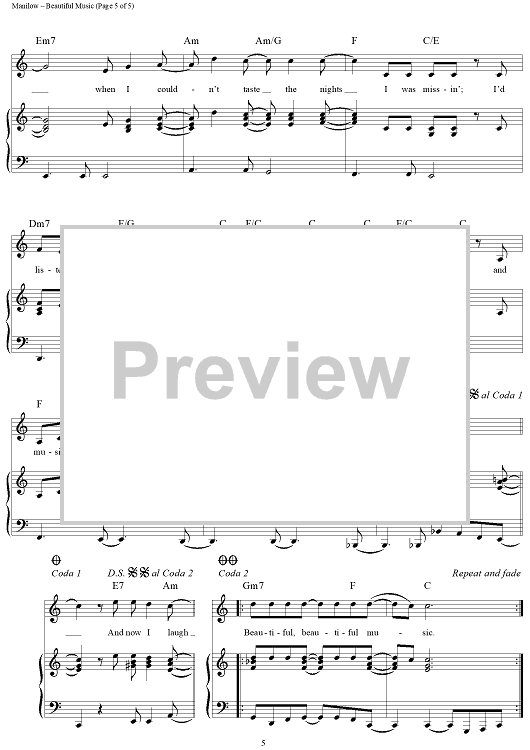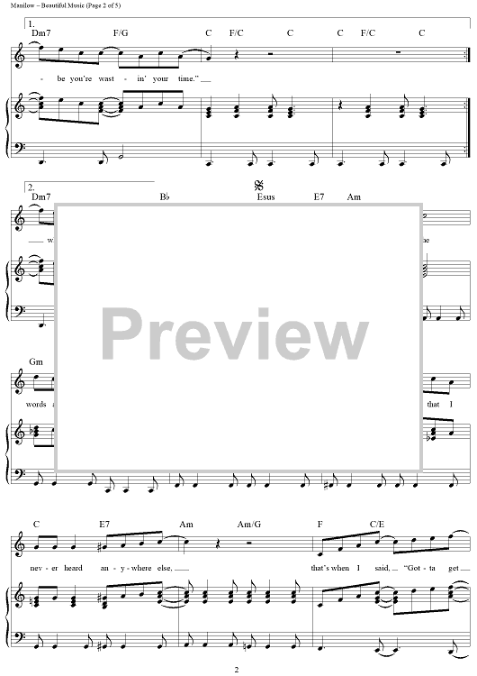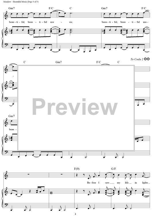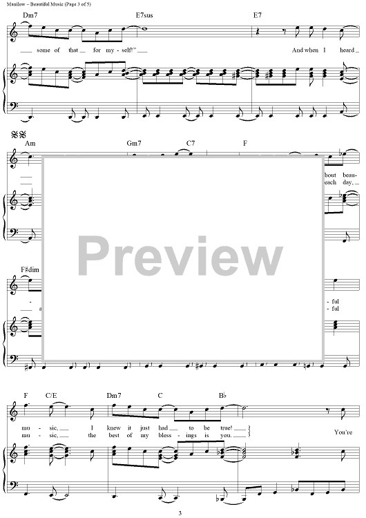 Digital Sheet Music for Beautiful Music by Barry Manilow, Marty Panzer scored for Piano/Vocal/Chords; id:321284