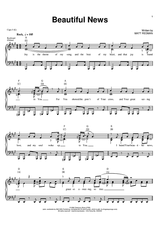 Digital Sheet Music for Beautiful News by Matt Redman scored for Piano/Vocal/Chords; id:394036