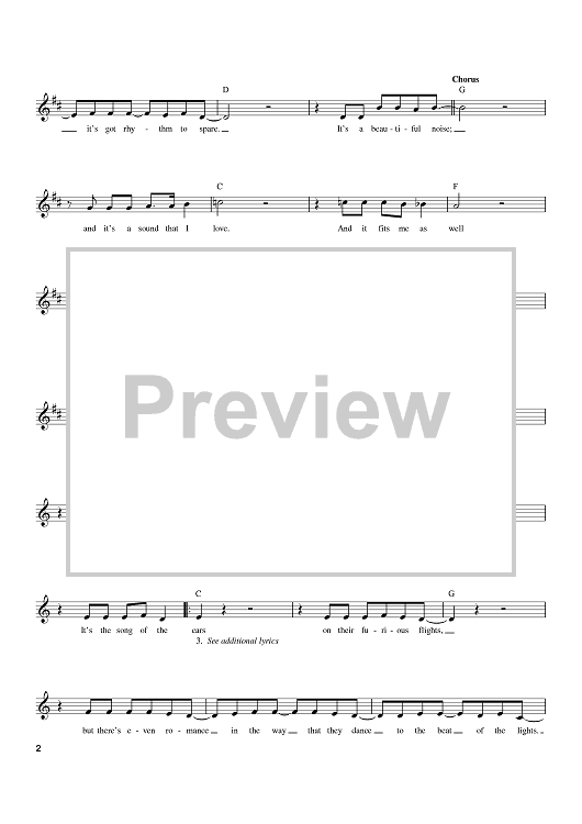 Digital Sheet Music for Beautiful Noise by Neil Diamond scored for Lead Sheet with Guitar Grids; id:382182