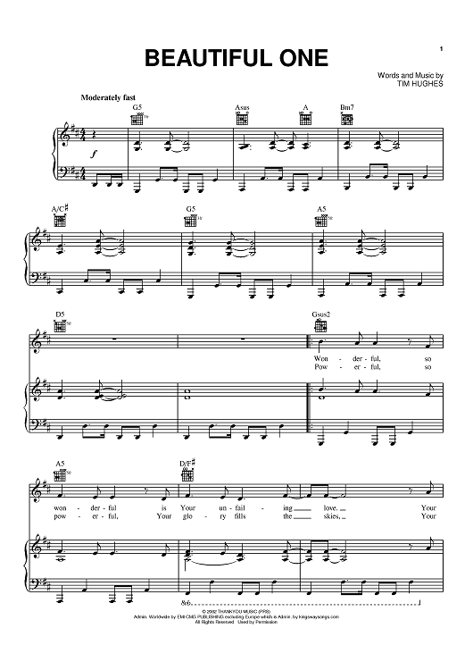Digital Sheet Music for Beautiful One by Tim Hughes, Jeremy Camp, By the Tree scored for Piano/Vocal/Chords; id:374770