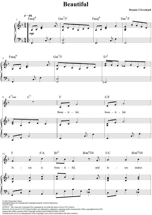 Digital Sheet Music for Beautiful by Dennis Cleveland scored for Piano/Vocal/Chords; id:220593