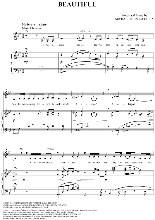 Digital Sheet Music for Beautiful by Michael John LaChiusa scored for Piano/Vocal; id:310067
