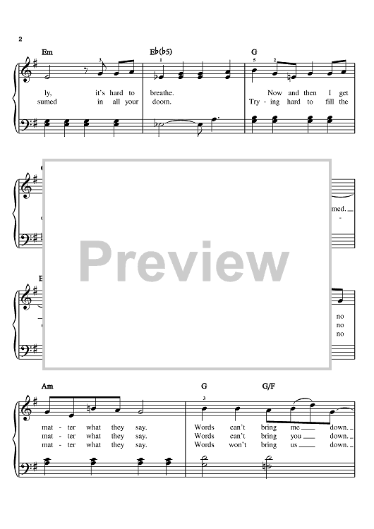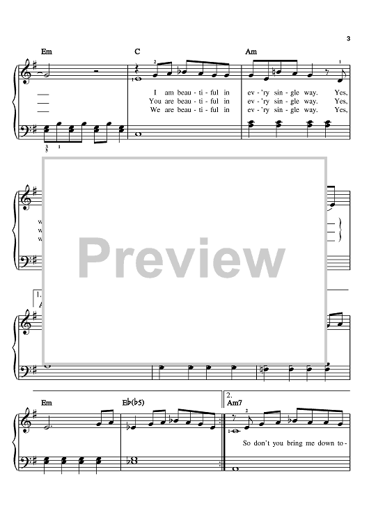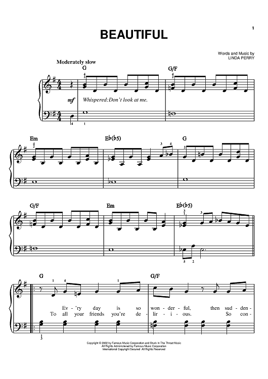 Digital Sheet Music for Beautiful by Linda Perry, Christina Aguilera scored for Easy Piano; id:370924