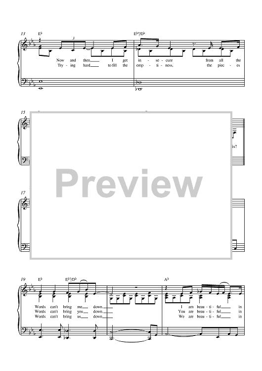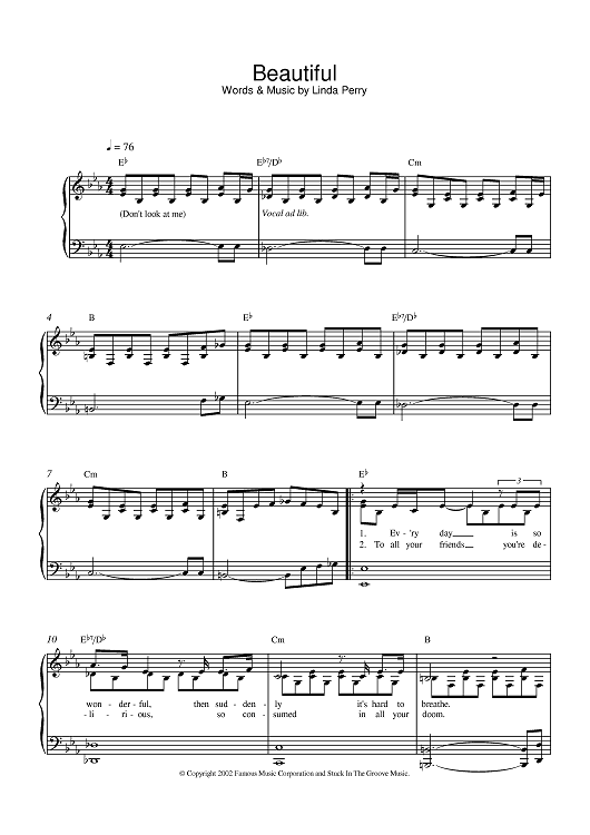 Digital Sheet Music for Beautiful by Linda Perry, Christina Aguilera scored for Piano; id:377994