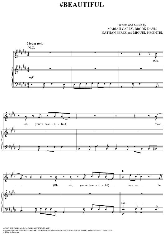 Digital Sheet Music for #Beautiful by Mariah Carey, Miguel, Brook Davis, Nathan Perez scored for Piano/Vocal/Chords; id:436726