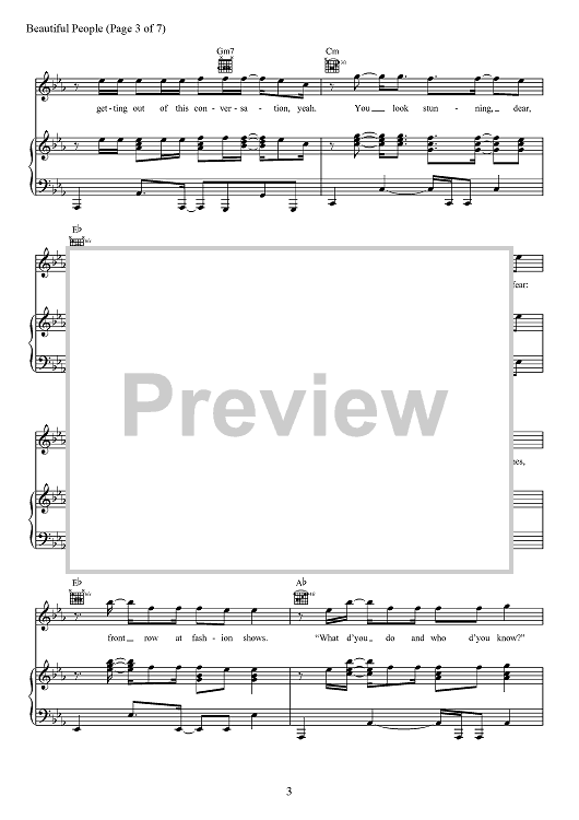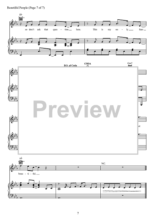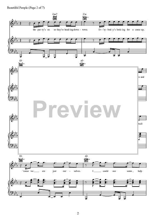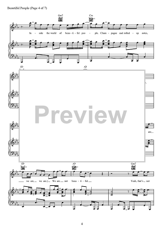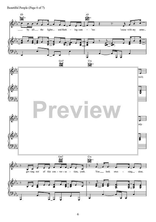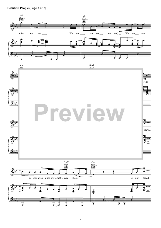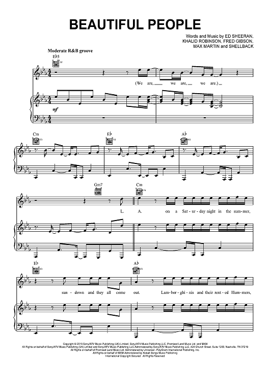 Digital Sheet Music for Beautiful People by Max Martin, Ed Sheeran, Shellback, Khalid Robinson, Khalid, Fred Gibson scored for Piano/Vocal/Chords; id:467677
